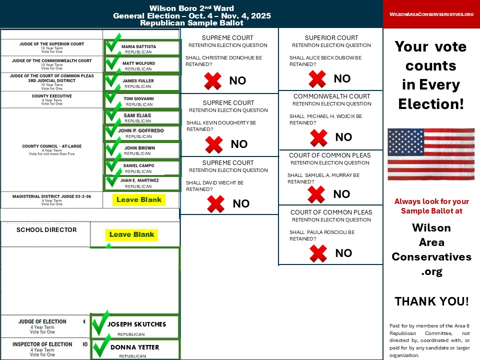 Look back here for Primary Sample Ballots in the spring of 2026 and for General Election Sample Ballots next fall.