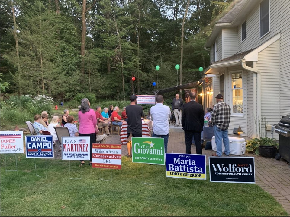 Tom Giovanni and other candidates running this fall met with local residents at the home of Scott and Rebecca Janney in Williams Township.