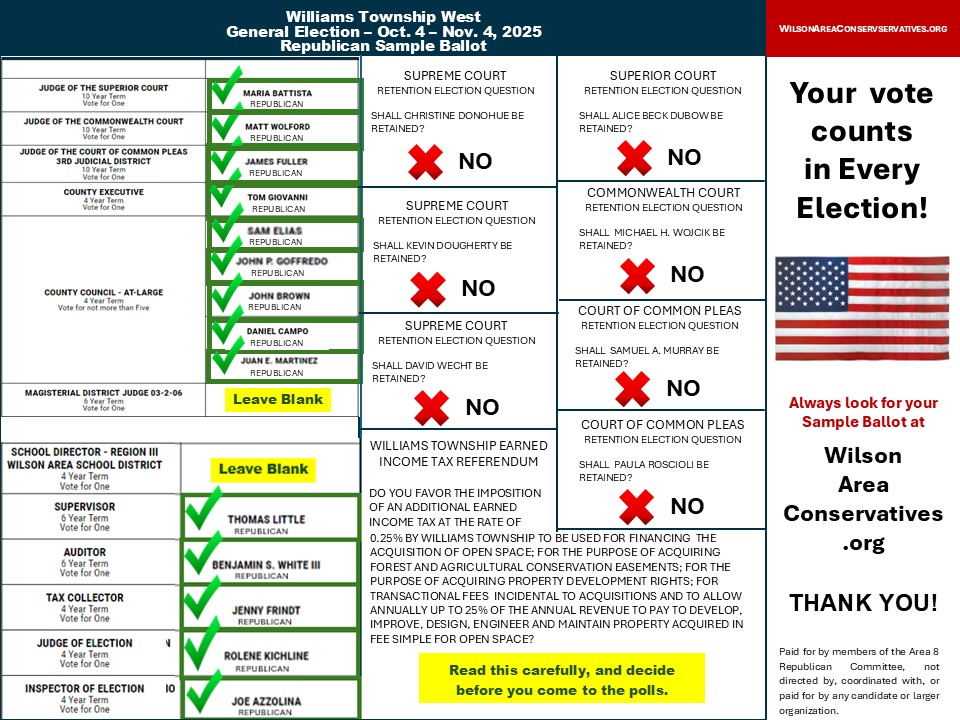 Wilson (Three Wards) Wilson Ward 2: Strausser Community Center, 2201 Liberty St (Parking Lot is at the end of Liberty St) Wilson Ward 3: LINCS Family Center 2400 Firmstone St, Easton (Behind The Wilson Area Intermediate School)Williams Township (Four Precincts)